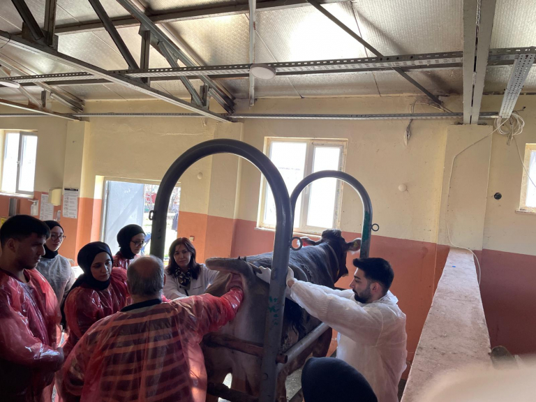 Yüksekokulumuz Laborant ve Veteriner Sağlık Programı’nda okuyan 2.sınıf öğrencilerimize Klinik Uygulama dersi kapsamında, temel bilgileri hayvanlar üzerinde göstermek amacıyla, öğrencilerimiz Fırat Üniversitesi Tarım ve Hayvancılık Araştırma ve Uygulama Merkezi (TAHAM)’ine götürülerek uygulamalı eğitim yapıldı. Meslek kapsamında alınan teorik “KATATER UYGULAMA, İNTRAVENÖZ İLAÇ VE SIVI UYGULAMA (IV) TEKNİKLERİ ve HASTALIK TANISI İÇİN MATERYAL ÖRNEĞİ ALMA” konusu üzerine, bölüm başkanı Prof. Dr. Ayşe KILIÇ ve bölüm hocalarından Prof. Dr. Atilla Yıldız uygulamalı eğitim verdi.
